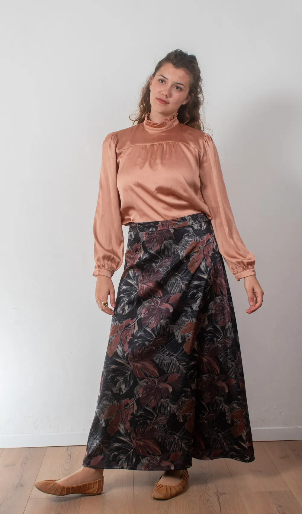 חולצת שיפון רכה וענוגה למראה אלגנטי, בצבע אפרסק עמוק.